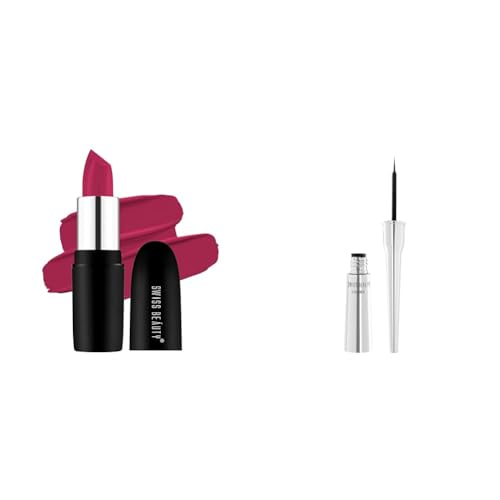 Swiss Beauty Pure Matte Lipstick Shade-228 3.8gSwiss Beauty pure matte lipstick gives a matte finish on your lips. Exquisitely smoothing. It's like a colour infused fountain of youth for your lips. Instantly drenches lips in perfect locks it in for endless comfort. Infused with advance skin care ingredients the formula appeared in fine lines and helps lips look fuller.Swiss Beauty Waterproof Liquid Black Eyeliner | Smudge Proof Transfer Proof Eye Liner for Eye Makeup |Black 4ml |Why you will love it experience the new generation of liquid eyeliner technology keeps pigments super saturated spring cap keeps the formula fresh. You can easily apply Swiss Beauty eyeliner to change your makeup look for different moods and occasions.
