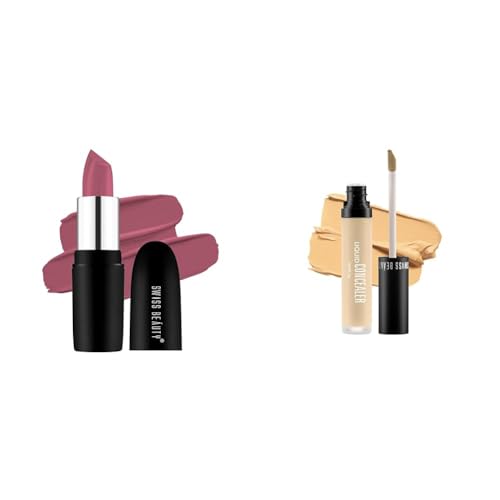 Swiss Beauty Pure Matte Lipstick | Long Lasting Hydrating & Lightweight Lipstick | Hot Nude 3.8gm|The product comes in safe package. The product will be an excellent pick for you.Swiss Beauty Liquid Light Weight Concealer With Full Coverage |Easily Blendable Concealer For Face Makeup With Matte Finish | Shade- Yellow 6G |This concealer from Swiss Beauty lets you cover imperfections without looking covered up. Its easily blendable and buildable giving you even coverage with a luminous demi-matte finish. Ultra-lightweight this high tech liquid formula never settles into fine lines and it melds on for a no makeup look while full coverage in an instant.