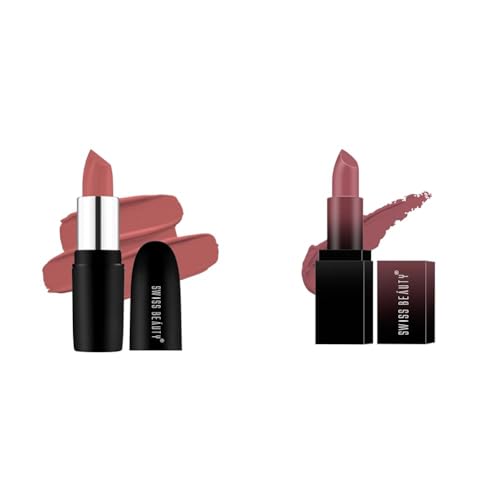 SWISS BEAUTY Pure Matte Lipstick | Long Lasting, Hydrating & Lightweight Lipstick | Bare, 3.8gm| & Pure Matte Lipstick | Long Lasting, Hydrating & Lightweight Lipstick | Bare, 3.8gm|