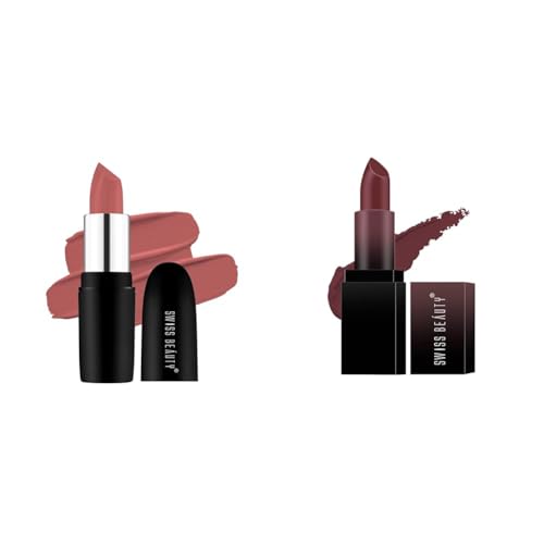 SWISS BEAUTY Pure Matte Lipstick | Long Lasting, Hydrating & Lightweight Lipstick | Bare, 3.8gm| & Pure Matte Lipstick | Long Lasting, Hydrating & Lightweight Lipstick | Bare, 3.8gm|