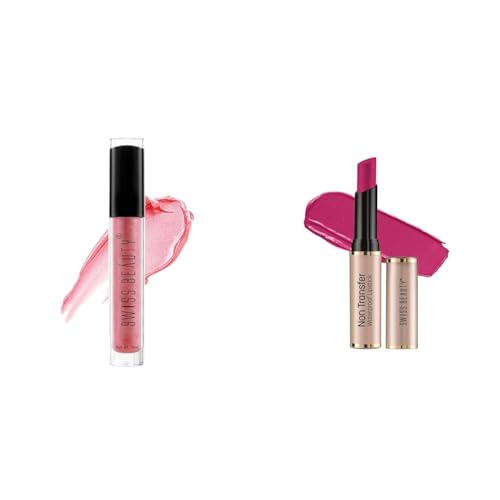 Swiss Beauty Shine & Plump Non - Sticky & Hydrating Lip Gloss & Swiss Beauty Non-Transfer Waterproof Lipstick with Jojoba Seed Oil