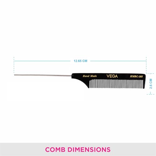 Vega Tail Comb With Steel Pin And Fine Tooth, Black