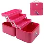 HomeBeautyMakeup KitsMakeup KitsPU 3 Layer Large Makeup Box Cosmetic Storage Bag Vanity Case Trousseau Box Beauty Organizer, Dark Pink, 24x20x23.5 cm, Travel Accessories