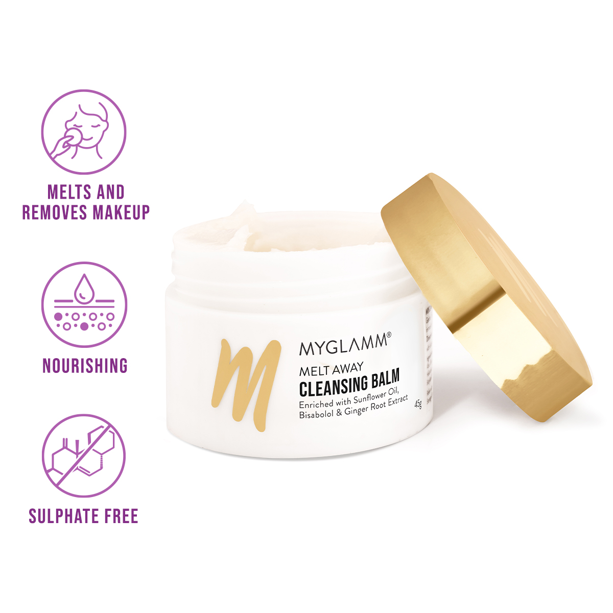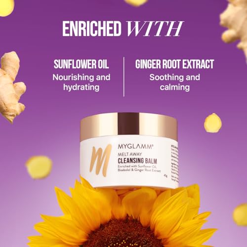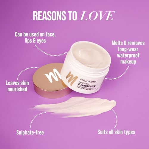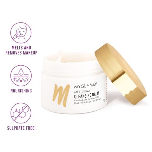 Ace the art of double-cleansing and melt away all your cleansing woes with MyGlamm Melt Away Cleansing Balm. Enriched with Sunflower Oil and Coconut Oil this transforming makeup remover gently cleanses and melts every trace of long-wear makeup grime and oil-based impurities from your face lips and eyes leaving your skin feeling soft and nourished instead of dry and stretchy. Suitable for every skin type.