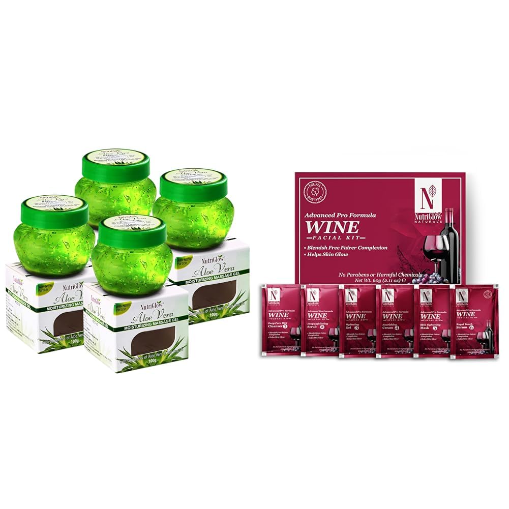 HomeBeautyMakeup RemoverMakeup CleanserNutriGlowAloe Vera Gel for Face Hair 100 gm Each Pack of 4NATURAL'S Advanced Pro Formula Wine Facial Cleanup Kit 60 GM