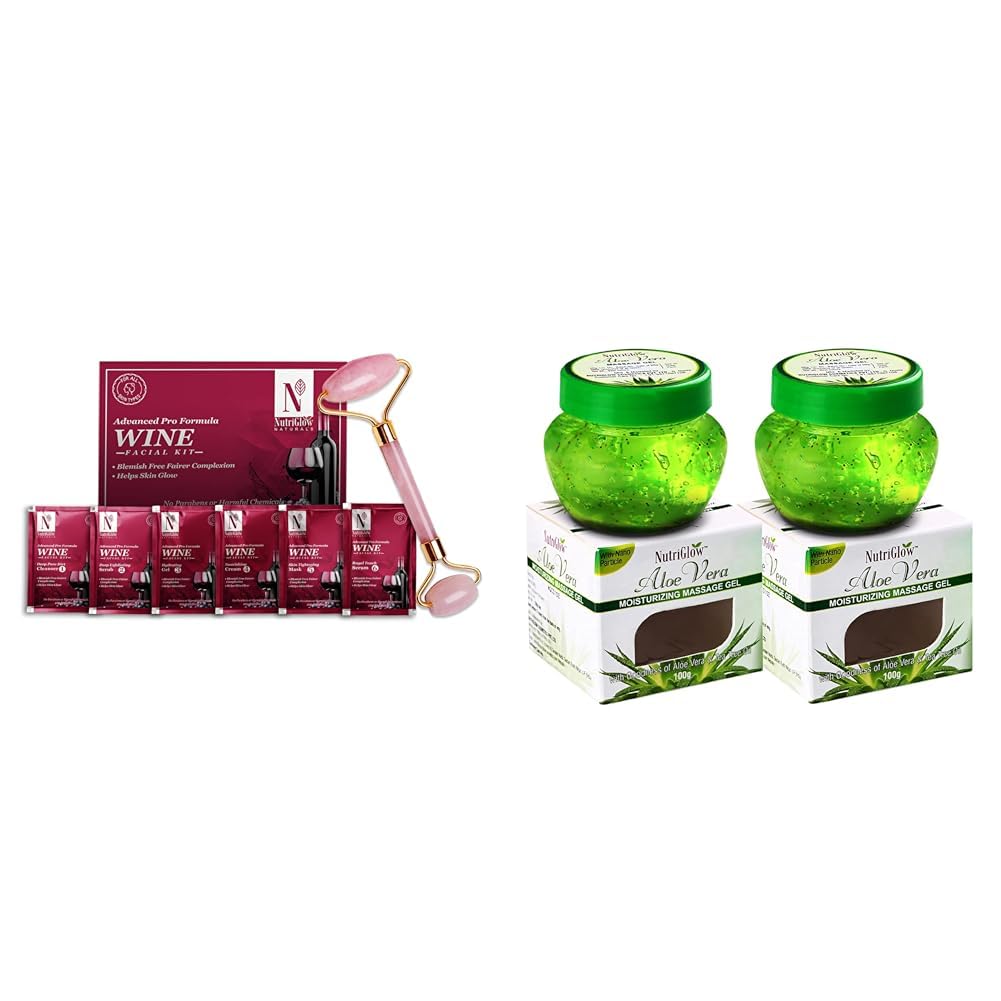HomeBeautyMakeup RemoverMakeup CleanserNutriGlowNATURAL'S Advanced Pro Formula Wine Facial Cleanup Kit with Jade RollerAloe Vera Gel Great for Face Hair 100gm Each Pack of 2