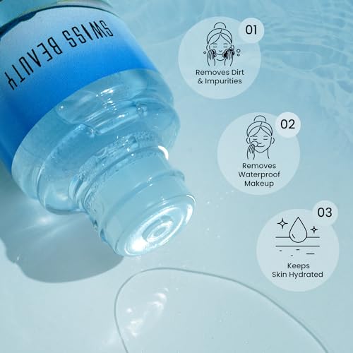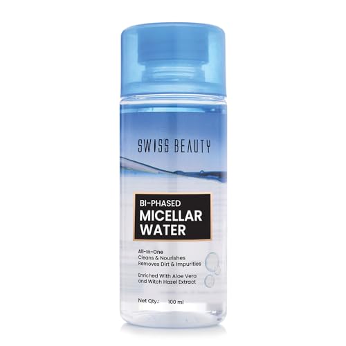 Experience the gentle yet powerful cleansing with Swiss Beauty Bi-Phased Micellar Water. This innovative formula effortlessly removes dirt impurities and even the most stubborn waterproof makeup leaving your skin clean refreshed and hydrated. The bi-phased formula combines the effectiveness of oil and water for a thorough yet gentle cleanse. The oil phase effectively breaks down and lifts away waterproof and transfer-proof makeup. Meanwhile the water phase gently cleanses dirt and impurities from your skin leaving it feeling fresh and rejuvenated. The gentle formula is enriched with soothing Aloe Vera nourishing Witch Hazel that work together to keep your skin hydrated and balanced. It is perfect for all skin types providing a gentle yet effective cleanse without causing irritation or dryness.