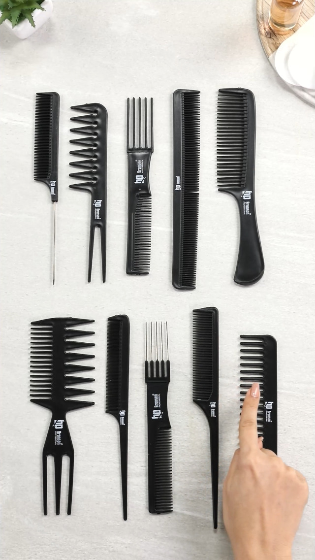 All the basic styling tools you need! 10 different combs in all.These combs can be used after the shower bath or on dry hair. In fact they're great for head hair and even brushing out your beard. Lightweight and discrete this unisex hair comb set from durable plastic can be put in the car a briefcase your desk at work or even your bathroom.Each of our combs is designed with straight durable teeth of different sizes and densities to avoid pulling tangling or damaging hair.The combs are anti-static and have specially designed rounded tips that don't hurt your scalp. These combs are made with a high-grade polymer material.