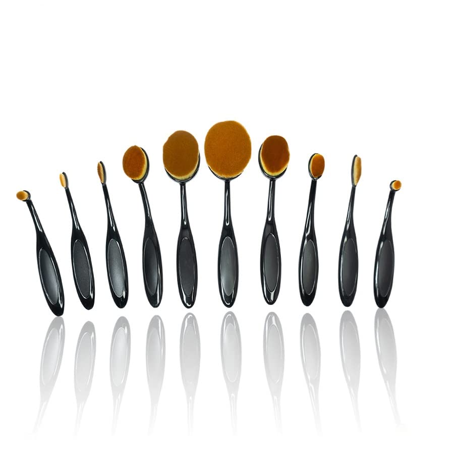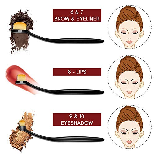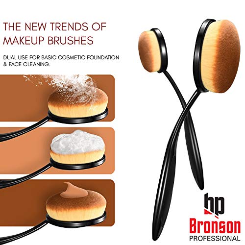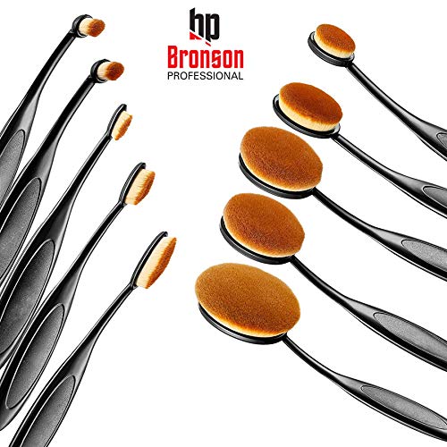 Bronson Professional Makeup Brush Set features 10 high quality oval shaped makeup brushes. Packed with ultra-soft perfectly cut bristles these brushes effortlessly fit the contours of your face for a seamless makeup application. These brushes are beautifully crafted to blend powder cream and liquid based foundations moisturizes primers bronzers etc. for a flawless look.Furthermore its ergonomically designed handle ensures optimal comfort and precision when in use.These makeup brushes are the best with soft fibers that don't penetrate or irritate your skin. The bristles also do not fall out during the makeup application process.This makeup brush set is perfect for both beginners and professional makeup artists.Whether it is enhancing the beauty of your lips adding that dash of colour to bring out your eyes or beautifying you cheeks - this is the complete package and keeps you ready for every occasion.Made using the highest quality bristles and material these brushes are perfect to achieve the desired look.