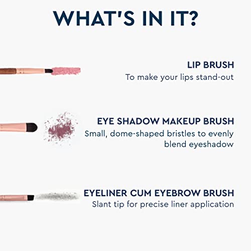 • ESSENTIAL TRIO BRUSH SET This professional kit of 3 makeup essentials for every girl includes Foundation brush Eyeshadow brush & a Lip brush. Grab these Professional tools to be your own makeup artist.