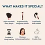 • BLUSH BRUSH is versatile and fluffy with curved edges to pick up and deposit just the right amount of blush on the cheeks.