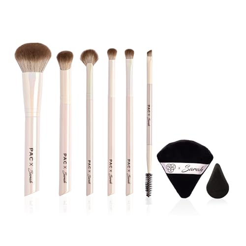 HomeBeautyTools & BrushesBrush SetsPAC X Sarah Dare to Dream Brush Kit for Face Makeup | 8 IN 1 for All Makeup Needs | Finest Brushes for Makeup Routine | With Sponge and Powder Puff | Travel-Friendly Kit | Contains Pouch