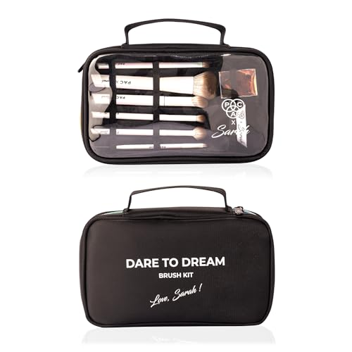 PAC X Sarah Dare to Dream Brush Kit for Face Makeup | 8 IN 1 for All Makeup Needs | Finest Brushes for Makeup Routine | With Sponge and Powder Puff | Travel-Friendly Kit | Contains Pouch