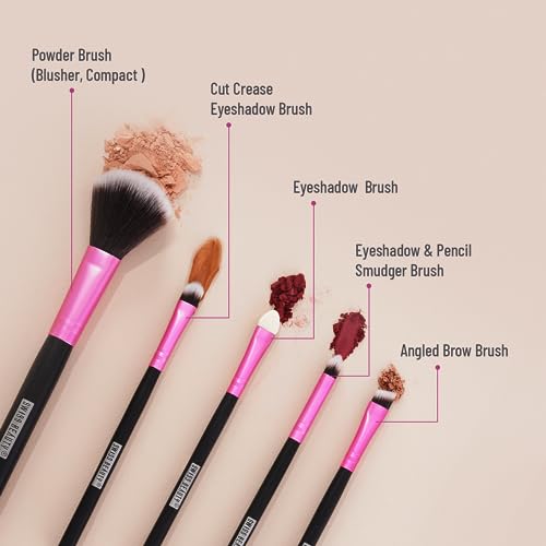 • Set of 5 makeup brushes: Take your eye makeup to the next level with our set of 5 high quality brushes. From powder brush to eyeshadow brush to cut crease brush these brushes are your ticket to stunning makeup.