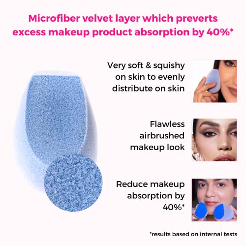 • Microfiber velvet makeup sponge/beauty blender that does not absorb any makeup products and gives you an airbrushed makeup look. India's only contour and powder sponge!