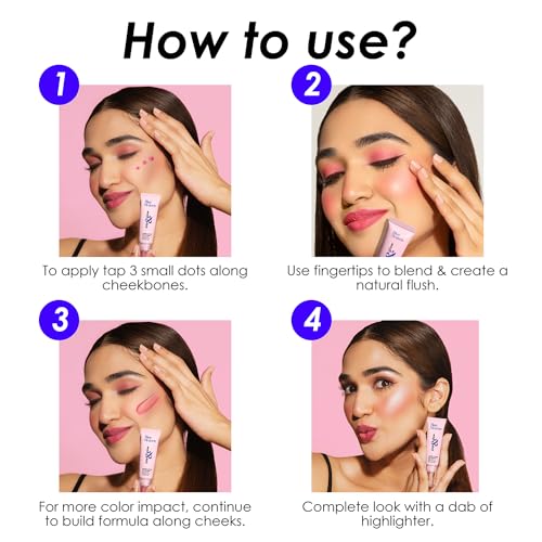 Blue Heaven Pop & Glow Cheeks & Eyes gel bloom blush is a gel cream-based formula that has the goodness of Rosehip Oil Coconut Oil and Squalene. It adds a beautiful flush of colour to your cheeks and eyes gives a buildable sheen and is super light on your skin. Gel cream based formula allows you to adapt to the level of coverage required from light medium to full. It is available in 5 buildable shades: Spicy Pink Subtle Nude Glam Pink Pink Tease & Coral Flash that are perfect for your AM to PM or casual to party makeup looks.