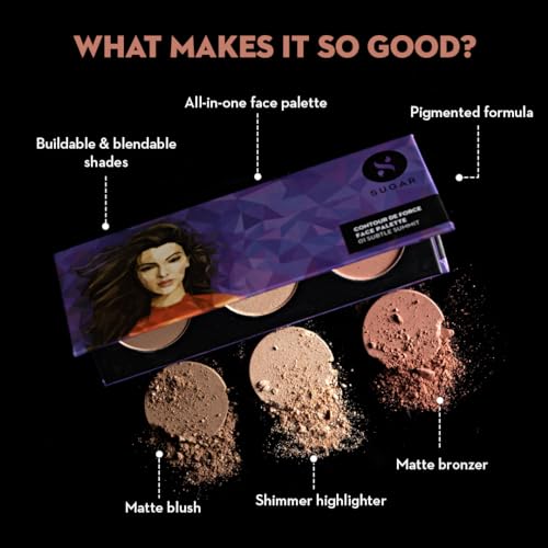 SUGAR Cosmetics Contour De Force Face Palette for Makeup | Includes Matte Bronzer, Highlighter & Blush | Makeup Palette with Built-in Mirror - 01 Subtle Summit