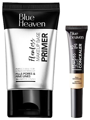 Blue Heaven Flawless Makeup Base Primer 30gA lightweight Formula with silicones and vitamins to soften Soothe and mattify your skin. Makeup Glides on and Stays Fresh For Hours. It Enhances the adherence to Make-Ups while used under Foundation Or Compact Powders. It Can also be used as base for eyeshadows and Blush Ons. Organic - yesBlue Heaven Flawless Matte liquid Concealer 101 Vanilla 16gmThe all new high coverage concealer in tube with applicator provides flawless look. It has a rich creamy texture and glides on smoothly. A product used to mask The dark circle hide the spots on the skin & gives full coverage. Very handy packing & Available in 6 different shades to suit all type of skin tones. Loaded with moisturiser that keeps skin hydrated all day long. All new formulation with a combination of moisturisers and emollients with aqua.