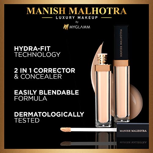 Flaunt a spotlight-worthy base with this high-coverage concealer from the Manish Malhotra Skin Awakening range. Its unique cushiony formula blends effortlessly into your skin delivering the coverage of your dreams. This liquid concealer also works as a corrector for uneven skin tone while effortlessly hiding blemishes & dark circles. Its lightweight texture stays soft and crease-free while the luxe lumi-matte finish leaves your skin looking flawless. Exclusive Hydra-fit Technology makes the formula super comfortable for extended wear so you can go from AM to PM without breaking a sweat.