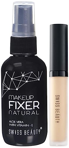 HomeBeautyMakeupSetting SpraySWISS BEAUTY Makeup Fixer Natural Aloe Vera With Vitamin-E,Face Makeup,White,50Ml & Professional Matte Liquid Full Coverage Concealer For Oily Skin,Face Makeup,Sand-Sable,5.6G,Pack Of 1