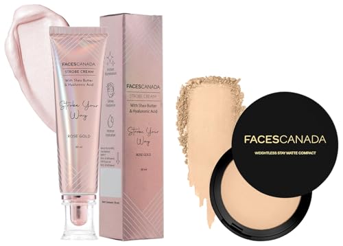 FACESCANADA Strobe Cream - Rose Gold, 30Ml And Weightless Stay Matte Finish Full Coverage Compact Powder For All Skin Type- Natural 9 G