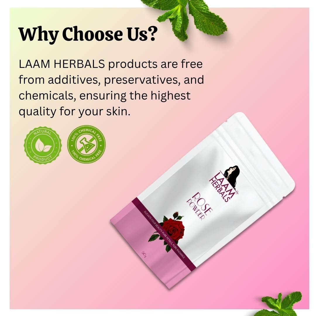 Laam Rose Petal Powder | Shade Dried | Hair & Skin Care | Easy to Apply & Remove 100 g