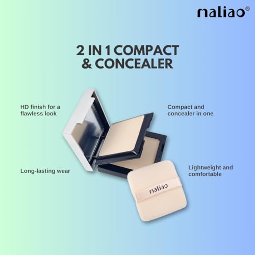 Achieve a flawless complexion with Maliao 2 in 1 Compact and Concealer. This innovative product combines the benefits of compact powder and concealer providing an HD finish for a perfect look. The long-lasting formula ensures that your makeup lasts all day providing continuous coverage without the need for frequent touch-ups. Light and comfortable it feels natural on the skin making it ideal for everyday wear. The portable design allows you to take it with you for quick and easy application whenever needed. Enhance your beauty routine with Maliao's versatile 2 in 1 compact and concealer and enjoy a seamless polished finish.