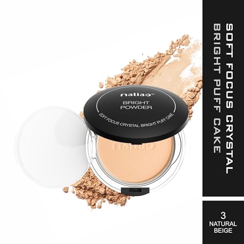 MALIAO Bright Powder Soft Focus Crystal Bright Puff Cake - Illuminate Your Beauty with a Crystal Finish (NATURAL BEIGE)