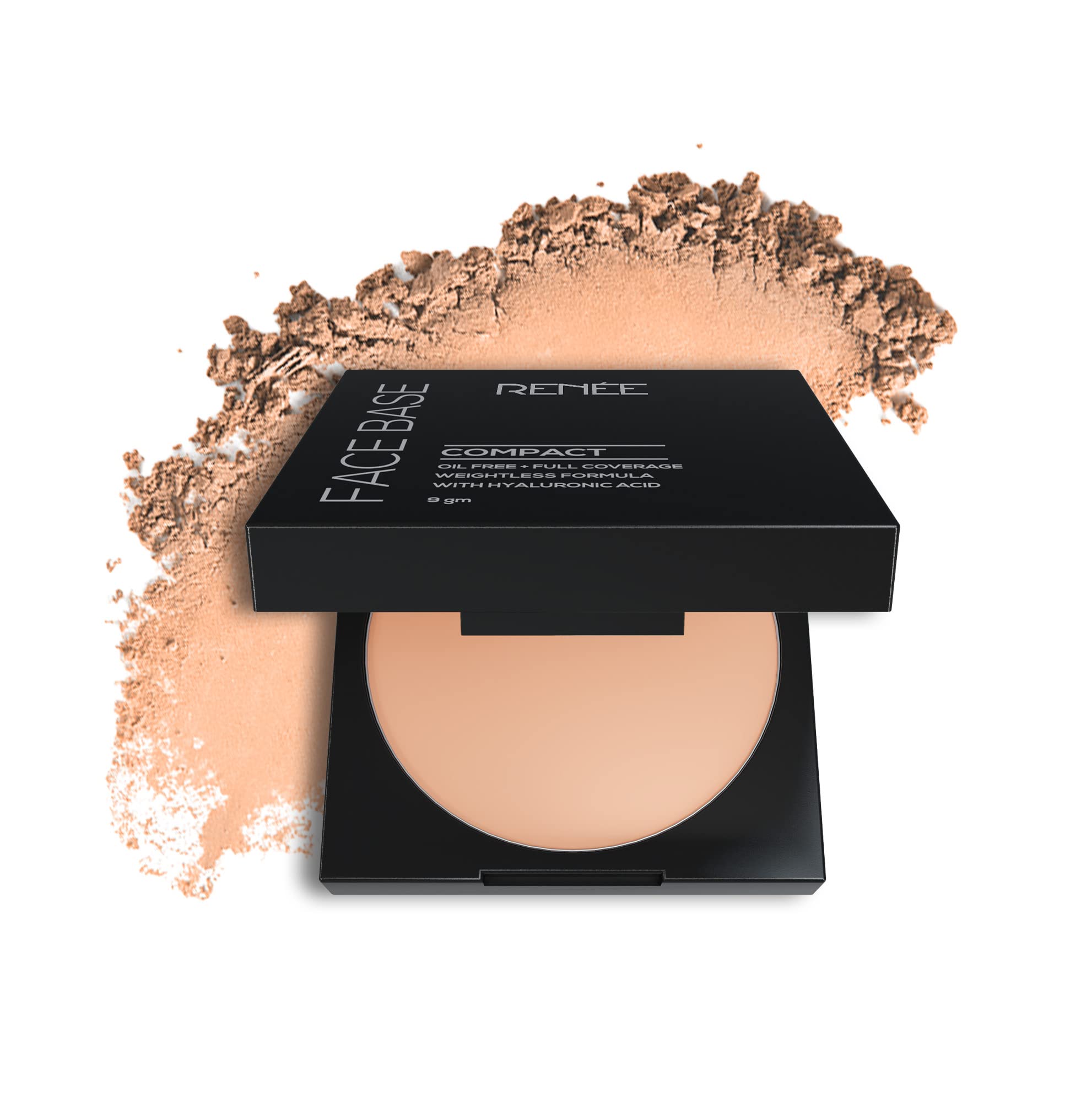RENEE Face Base Compact Powder Cashew Beige 9gm, Enriched With Hyaluronic Acid & Vitamin E, Long - Lasting, Easy Blend, Matte Finish, for All Skin Types