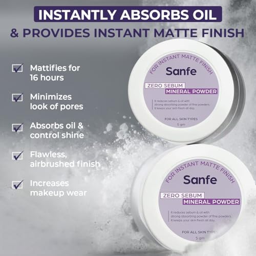 Sanfe No Sebum Mineral Powder | For instant matte finish, controls excess sebum | Fresh skin all day long, For oily face | For all skin types, 5gm