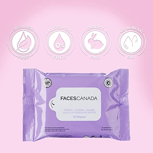 • FACES CANADA Fresh Clean Glow Makeup Remover Wipes are no rinse disposable makeup remover wipes that are easy to carry and can be used on the go.