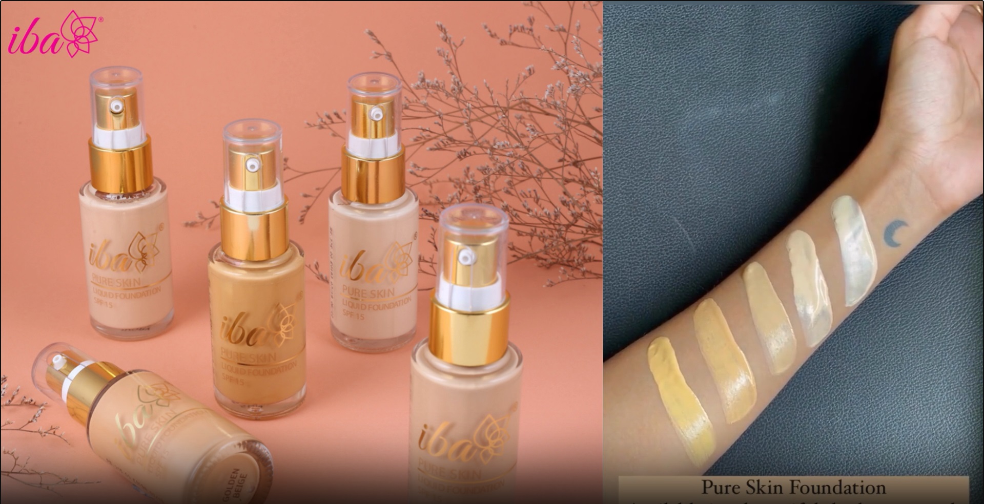 Iba pure skin liquid foundation is a unique ultra-blend able satin-smooth formula boosted with aloe vera vitamin e and rich minerals that provides dazzling long-lasting glow and full coverage. 100 percent oil-free. Suitable for all skin-types including oily or acne-prone skin.