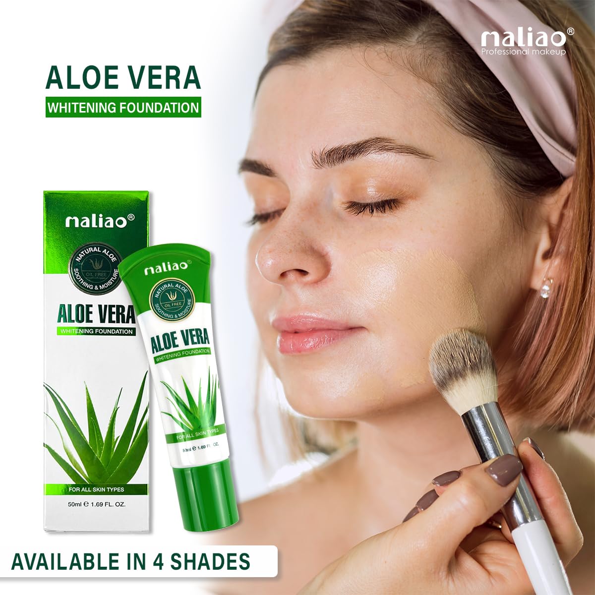 Discover radiant coverage with Maliao's ALOE VERA WHITENING Foundation. Enriched with the goodness of Aloe Vera this foundation provides nourishing and healthy-looking skin. It brightens and evens out your complexion leaving you with a gorgeous glow that lasts all day. The lightweight formula ensures comfortable wear throughout the day. Elevate your beauty routine with the nourishing elegance of Maliao's ALOE VERA WHITENING Foundation your secret to a luminous and radiant complexion.