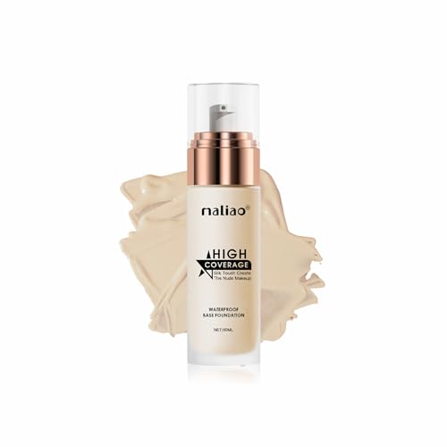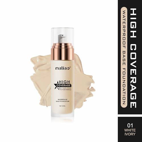Maliao High Coverage Waterproof Base Natural Foundation Cream - Flawless All-Day Wear (White Ivory), 1 Count