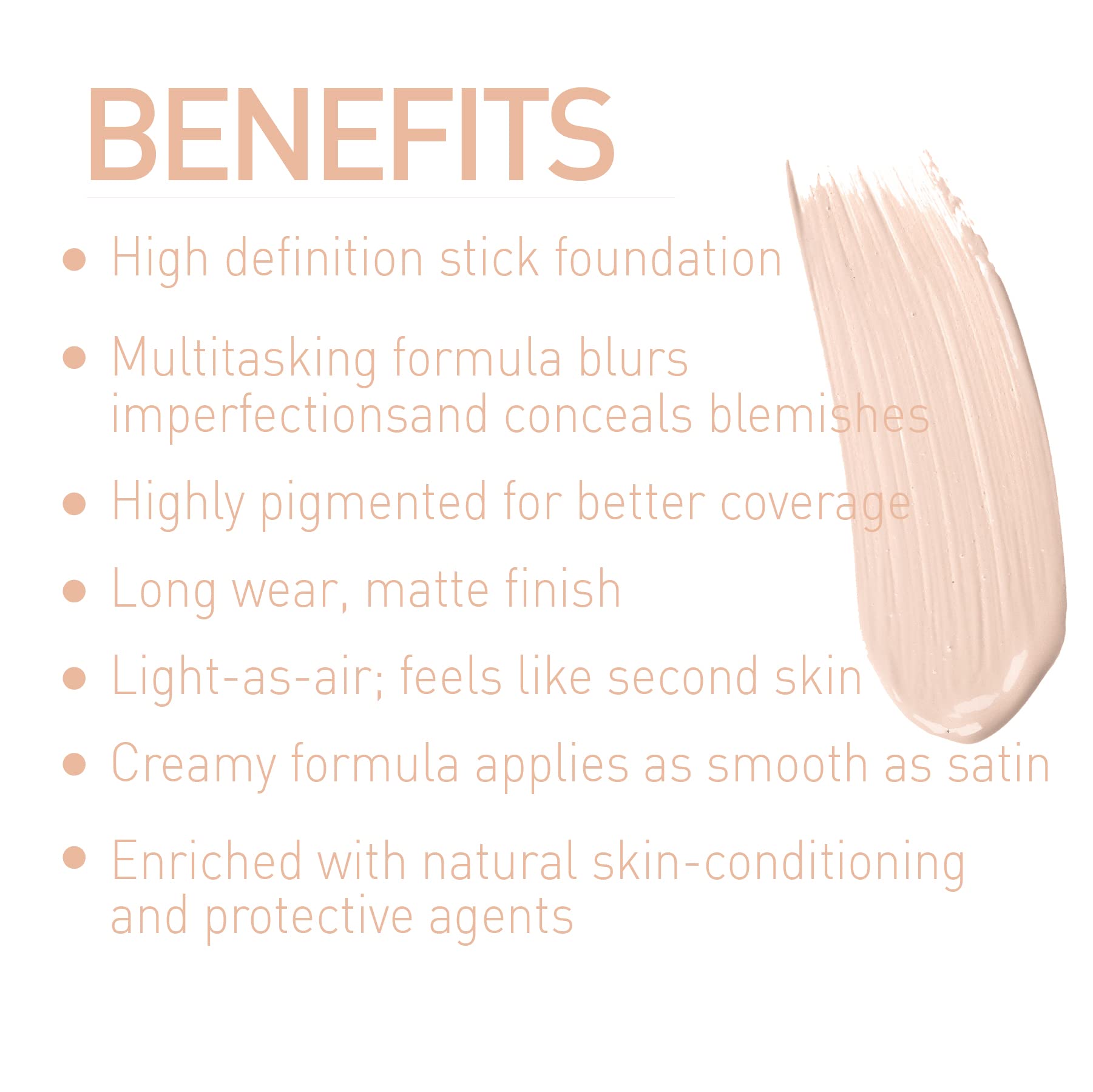 The MyGlamm POSE HD Foundation Stick is like an instant skin filter designed for the girl whos always on camera. This highly pigmented creamy formula glides on like a dream to give you a flawless matte finish (no shine stealing the spotlight). Think my skin but better in fact way better as this skin blurring foundation stick smoothens texture and tone. With the power of shea butter jojoba oil and vitamin E it hydrates nourishes and protects against free radical damage for a wholesome formula thats skincare and hi-def makeup rolled into one. Easily blendable and buildable coverage to make your skin look filtered to perfection. Lightweight and long-wearing this foundation leaves you looking photo-ready even in close-up.