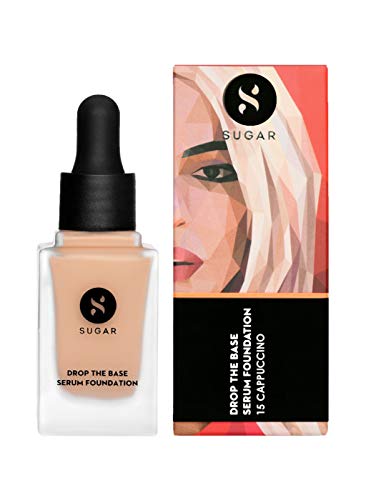 SUGAR Cosmetics Drop The Base Serum Foundation | Medium Coverage | Lasts 8 Hrs+ | Natural Finish | 20ml - 15 Cappuccino (Light, Cool Undertone)