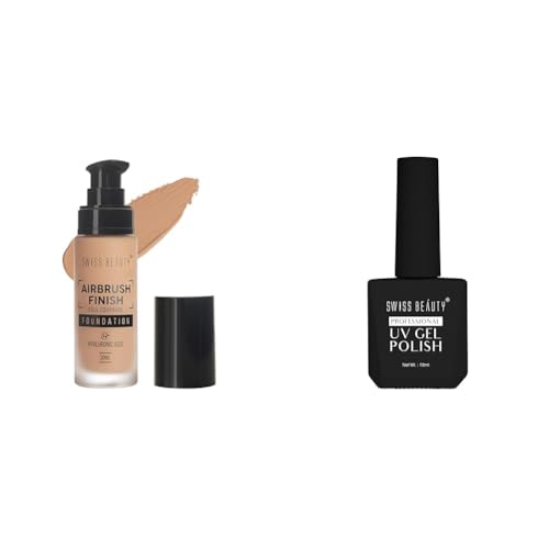 Swiss Beauty Airbrush Finish Lightweight Foundation | Full Coverage Blendable Foundation For Face Makeup |With Benefits Of Hyaluronic Acid Aloevera And Vitamin E | 30Ml | Shade- Warm SunA comfortable long-lasting Swiss Beauty Airbrush Finish foundation gives full coverage that lasts up to 8 hours. Its lightweight and creamy texture spreads easily and lets your skin breathe free all day. It is enriched with Vitamin E Aloe Vera and Coconut Fruit juice to keep your skin healthy. Especially treated micronized pigments helps give you a smoother natural matte finish .Swiss Beauty Professional UV Gel Nail Polish Lasts Upto 21 Days Super Glossy Finish Non-Chipping Non-Smudging Quick Drying Nail Polish Top Coat 15 mlThis gorgeous glossy effect UV Gel Nail Polish promises you 21 days of high gloss wear without nicking chipping or smudging. Just apply a thin layer and dry under a UV or LED lamp. This long-lasting UV Gel Nail Polish is suitable for natural nails UV gel nails false nails acrylic nails and nail tips. This Gel Nail Polish is highly pigmented with good tenacity and easy to apply. It offers flawless finish with its built-in brush that fits every nail size for a streak-free application. PROS: Easy Application Long Lasting Quick Dry Non-Toxic ingredients.