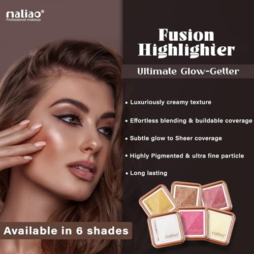 Elevate your makeup game with the Maliao Fusion Highlighter your ultimate glow-getter. This highlighter is designed to impart a radiant and luminous glow to your complexion leaving you with a lit-from-within look that turns heads. Radiant Glow: Infused with light-reflecting pigments this highlighter delivers a radiant glow that enhances your natural features and adds dimension to your face. Say goodbye to dull skin and hello to a luminous complexion. Versatile Formula: The versatile formula of this highlighter allows for multi-dimensional use. Apply it to your cheekbones brow bones cupid's bow and inner corners of the eyes to accentuate and illuminate various areas of your face. Buildable Coverage: Whether you prefer a subtle sheen or an intense glow this highlighter has got you covered. Its buildable coverage allows you to customize the level of luminosity according to your desired look giving you full control over your glow. Long-Lasting: Experience long-lasting wear with this highlighter that stays put throughout the day. No need to worry about touch-ups; your radiant glow will last from morning to night. Easy Application: The smooth and blendable texture of this highlighter makes application a breeze. Its creamy formula effortlessly glides onto the skin allowing for seamless blending and layering for a flawless finish.