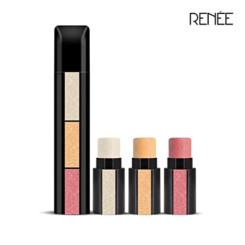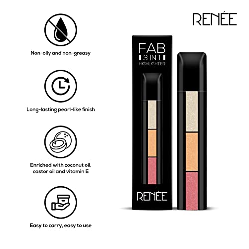 Renee FAB 3in1 Strobe Highlighter Stick | Multi-shade Highlighter With Vitamin E, Coconut & Castor Oil | Lightweight, Shimmery & Long-lasting Finish | Travel-friendly Design for All Skin Tones