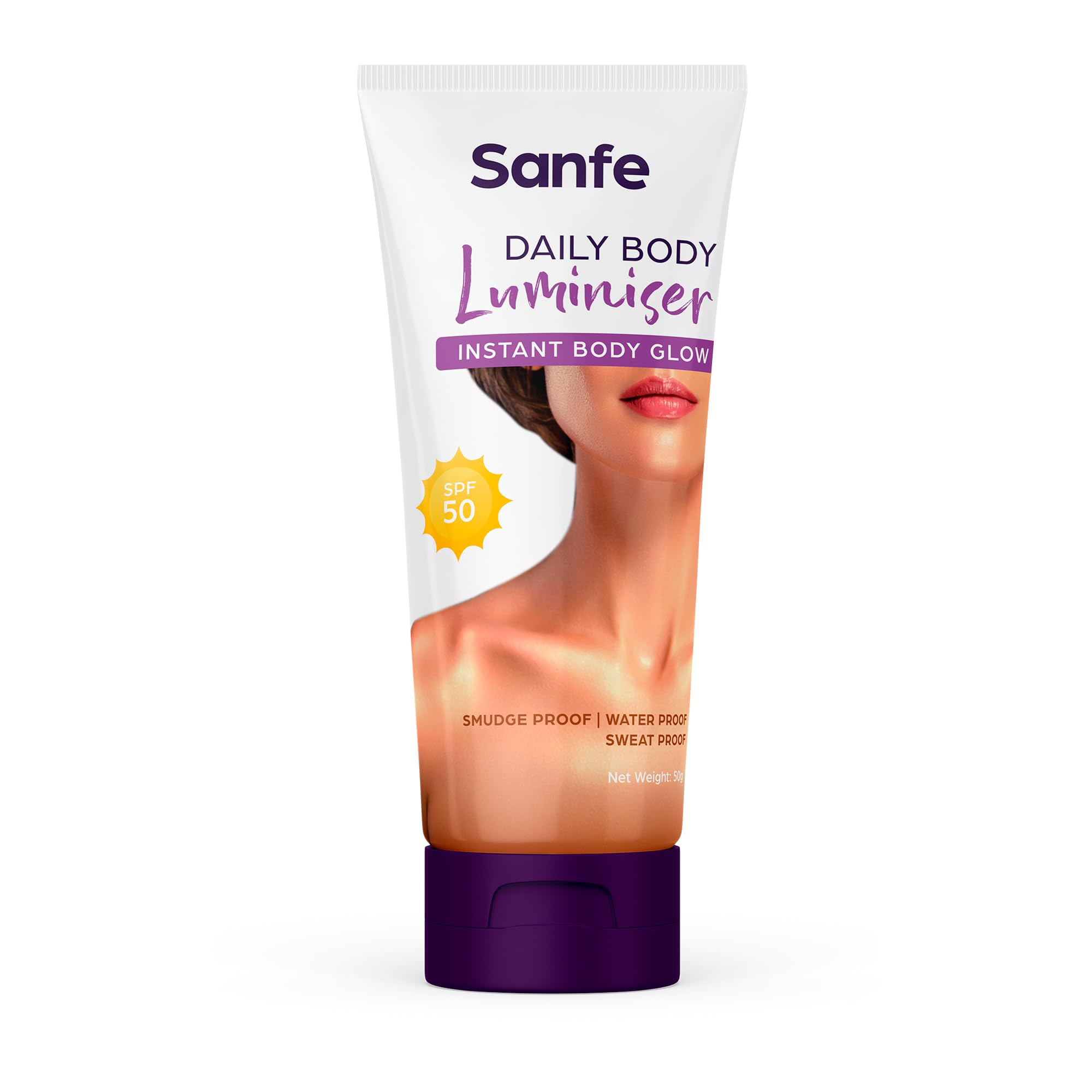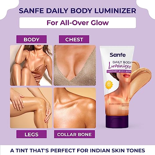 Sanfe Daily Body Luminiser l Instant Body Highlighter For Women | SPF50 Smudge Proof | Water Proof | Sweat Proof | Transfer Proof | Daily Complexion Booster | For Indian Skin | 50g