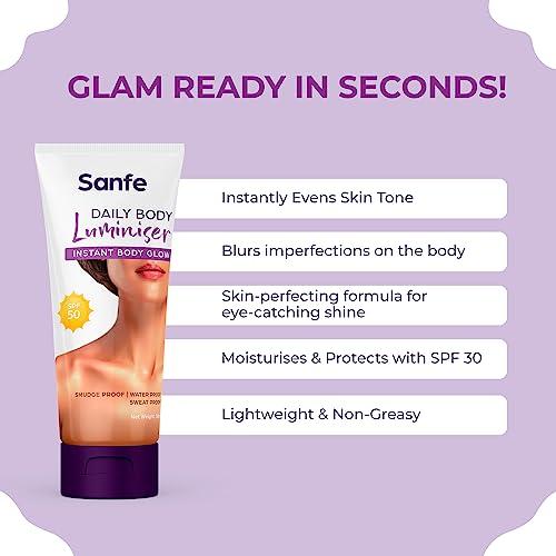 • EFFECTIVE RESULTS: Instantly achieve a radiant body glow with Sanfe Daily Body Luminiser a transformative formula that leaves your skin looking luminous and glowing. With the added benefit of SPF50 protection it shields your skin from harmful sun rays.