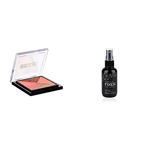 Swiss Beauty Baked Blusher & Highlighter Face Makeup Multicolor-01 7GCreate a radiant glow with this illuminating blusher powder that highlights the skin with a sheer wash of shimmering colour The soft and shimmering colour of Swiss Beauty baked blusher and highlighter creates a natural healthy glow. The long lasting formula provides a gorgeous smooth and even application. Even a soft touch with high intensity hues will bring out the natural flush on your cheeks. This blush is constructed with transparent pigments to avoid heaviness on the skin. Its luminous silky formula makes your cheeks glow. Lightweight blends effortlessly long-lasting comes with a hint of shimmer.Swiss Beauty Long lasting Misty Finish Professional Makeup Fixer Spray for Face makeup | With Aloe Vera and Vitamin- E | Light weight quick dry makeup Setting spray |70 ML|Makeup fixer used either before or after makeup is to set your makeup so that it can stay longer and not be wiped off with touch of hands or run off with perspiration. Spray from a distance and let it dry before applying makeup or to set makeup or to set makeup spray after applying makeup.