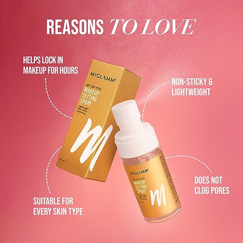 MyGlamm Set On You Setting Spray (60ml) | Long Lasting Makeup Fixer Spray for All Skin Types & Contains Hyaluronic Acid, Niacinamide & Aloe Extract