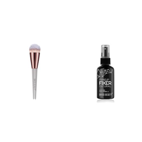 Swiss Beauty Foundation Brush - Brown"Swiss Beauty combines high-tech materials with innovative design brush to make creating a pixel-perfect look easier than ever Synthetic bristles are ultra-plush and smoother than the hair you'll find in other brushes. It creates flawless base enhanced look and the perfect finish like a pro. Each brush head is perfect shape allowing for precise application from dense coverage to a soft delicate finish. The collection is suitable for a wide range of products and every makeup need from powders creams and liquids to mineral makeup highlighter and shimmer. Brush names on the handles make for easy reference when creating your favorite look. F08 FOUNDATION BRUSH: Tapped Foundation Brush are usually flat less full in form with a gently tapped brush that blends and contour foundation for an effortlessly airbrush effect created with extra soft. This brush blend without absorbing excess product."Swiss Beauty Long Lasting Misty Finish Professional Makeup Fixer Spray For Face Makeup | With Aloe Vera And Vitamin- E | Light Weight Quick Dry Makeup Setting Spray |70 Ml|Makeup Fixer used either before or after makeup is to set your makeup so that it can stay longer and not be wiped off with touch of hands or run off with perspiration.Spray from a distance and let it dry before applying makeup or to set makeup spray after applying makeup