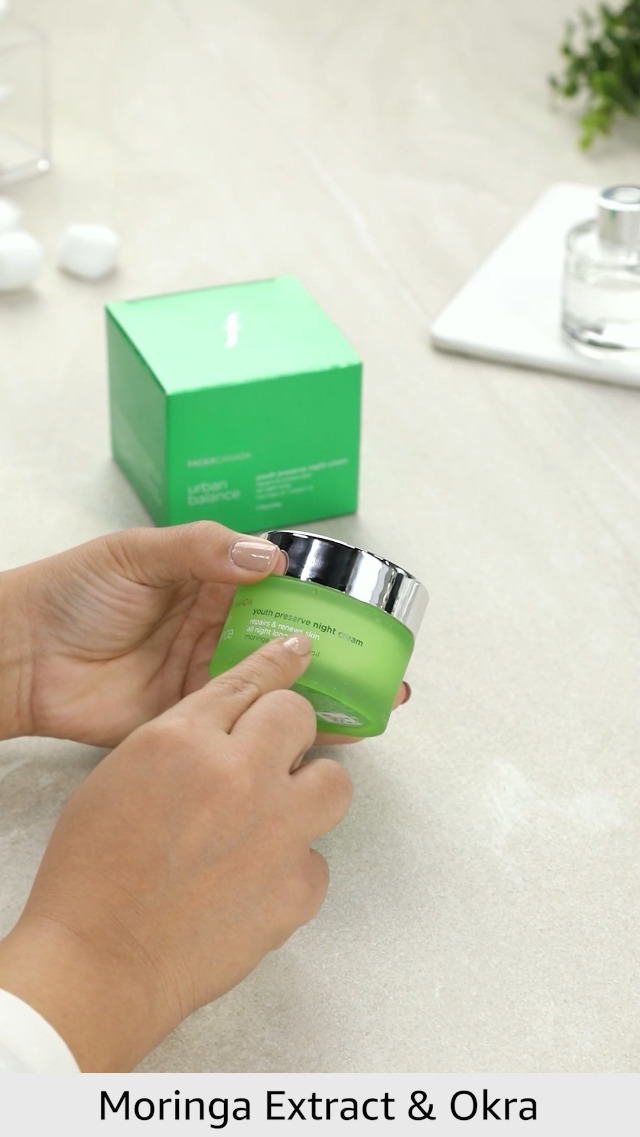 Formulated in Canada 'faces urban balance youth preserve night cream is a soothing and nourishing lullaby for your skin. It gets to work while you sleep moisturizing your skin with âmoringa extractâ and reducing the signs of ageing. The energising and anti-oxidant properties of âokraâ repair and build skin cells further reducing fine lines and wrinkles leaving your skin with a natural glow.
