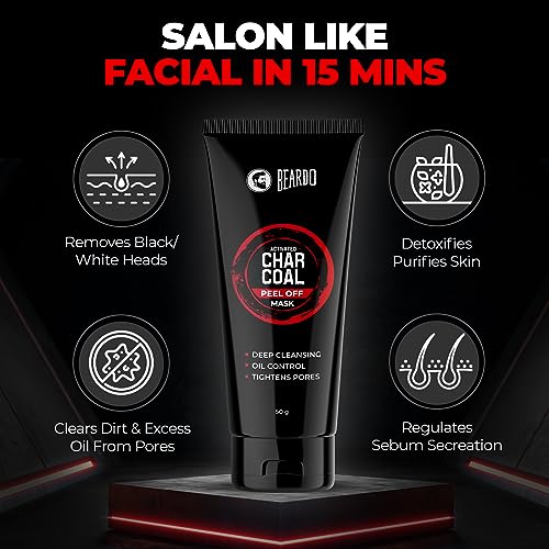 Beardo Charcoal Facewash, 50ml & Peel Off Mask, 50g| For Deep Pore Cleaning and Removes Dirt | Face Mask for Glowing Skin | Gift Hamper for Men | Valentines day gift for husband | Gift for boyfriend | Gift for Men