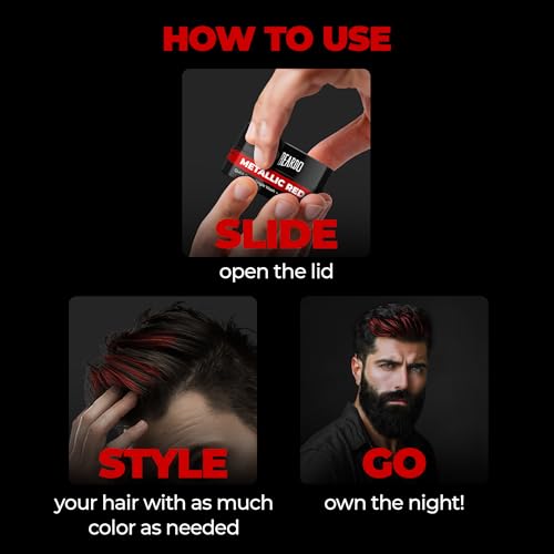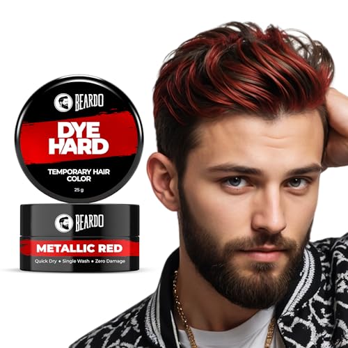 Beardo Dye Hard Temporary Hair Color - Metallic Red, 25g | Temporary 1-Day 1-Wash|DIY Instant Hair Color Makeup for Men| No Bleach | No Ammonia | No Damage