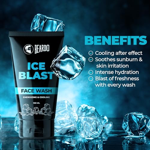 BEARDO Ice Blast Cooling Facewash for Men, 100 ml | INSTANT Icy freshness | Aloe Vera Face wash, Vitamin E & Menthol for cool lock technology | Refreshing & Hydrating facewash