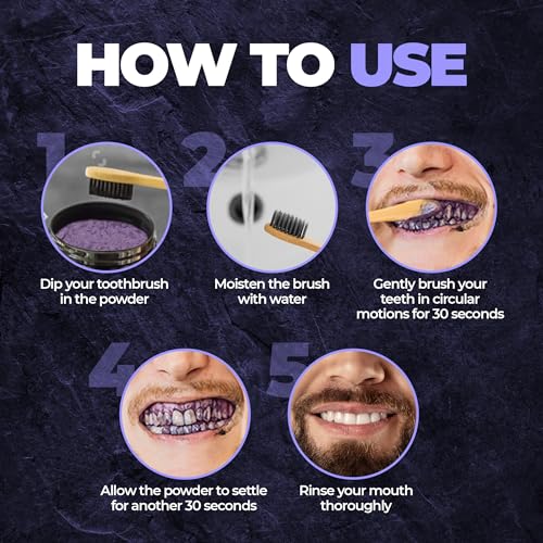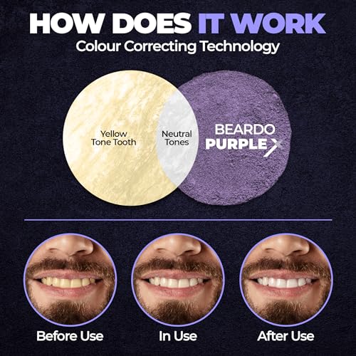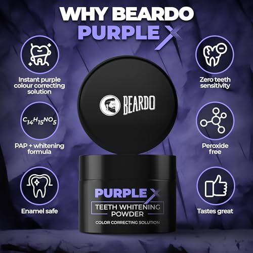 • TEETH WHITENING : Beardo Purple X Teeth Whitening Powder uses a groundbreaking approach by applying a purple hue to teeth. This unconventional step effectively neutralizes yellow undertones unveiling a brighter shade of white.