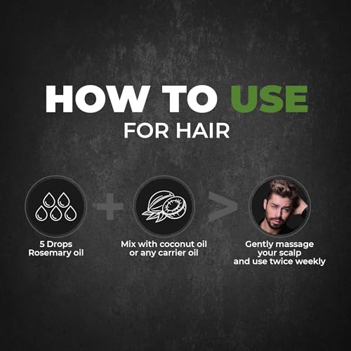 • ROSEMARY OIL FOR HAIR GROWTH – Rosemary essential oil is best suited as a hair oil for hair fall and regrowth and helps with receding hairline premature greying. Rosemary oil is soothing on the scalp and works perfectly to treat dry damaged hair